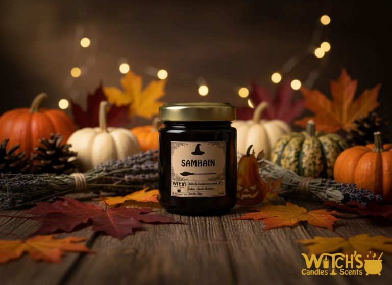 Chez Witch’s Candles & Scents, Samhain s’incarne dans une bougie artisanale au parfum envoûtant et profondément ancré.