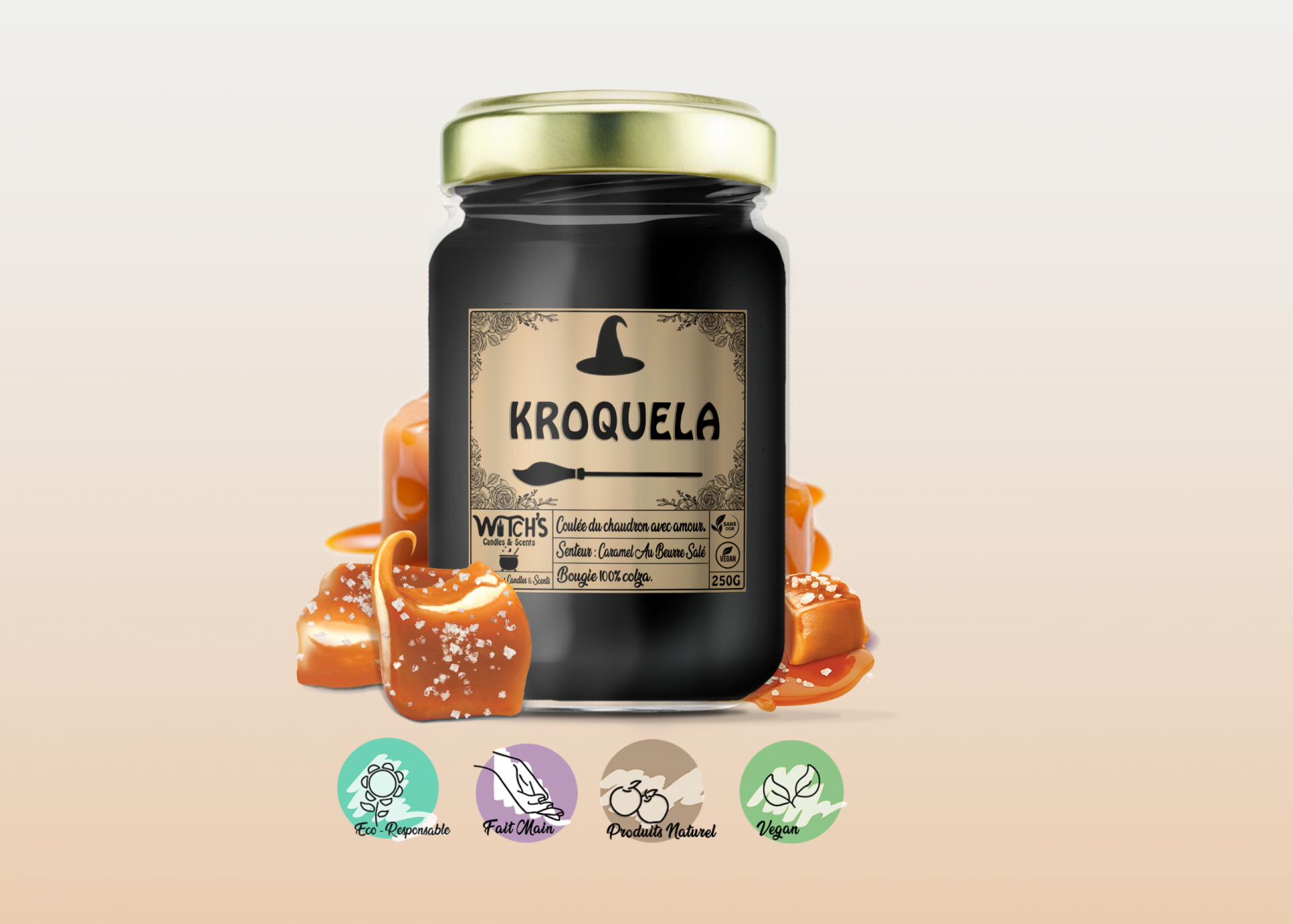 Satisfaites vos envies de sucreries avec notre bougie parfumée Kroquela, une fragrance gourmande et addictive qui réveille vos papilles avec les arômes suaves et caramélisés de caramel au beurre salé. Allumez cette bougie et laissez-vous emporter par ses notes chaudes et enveloppantes, idéales pour créer une ambiance chaleureuse et conviviale dans votre intérieur. Un véritable délice pour les sens !