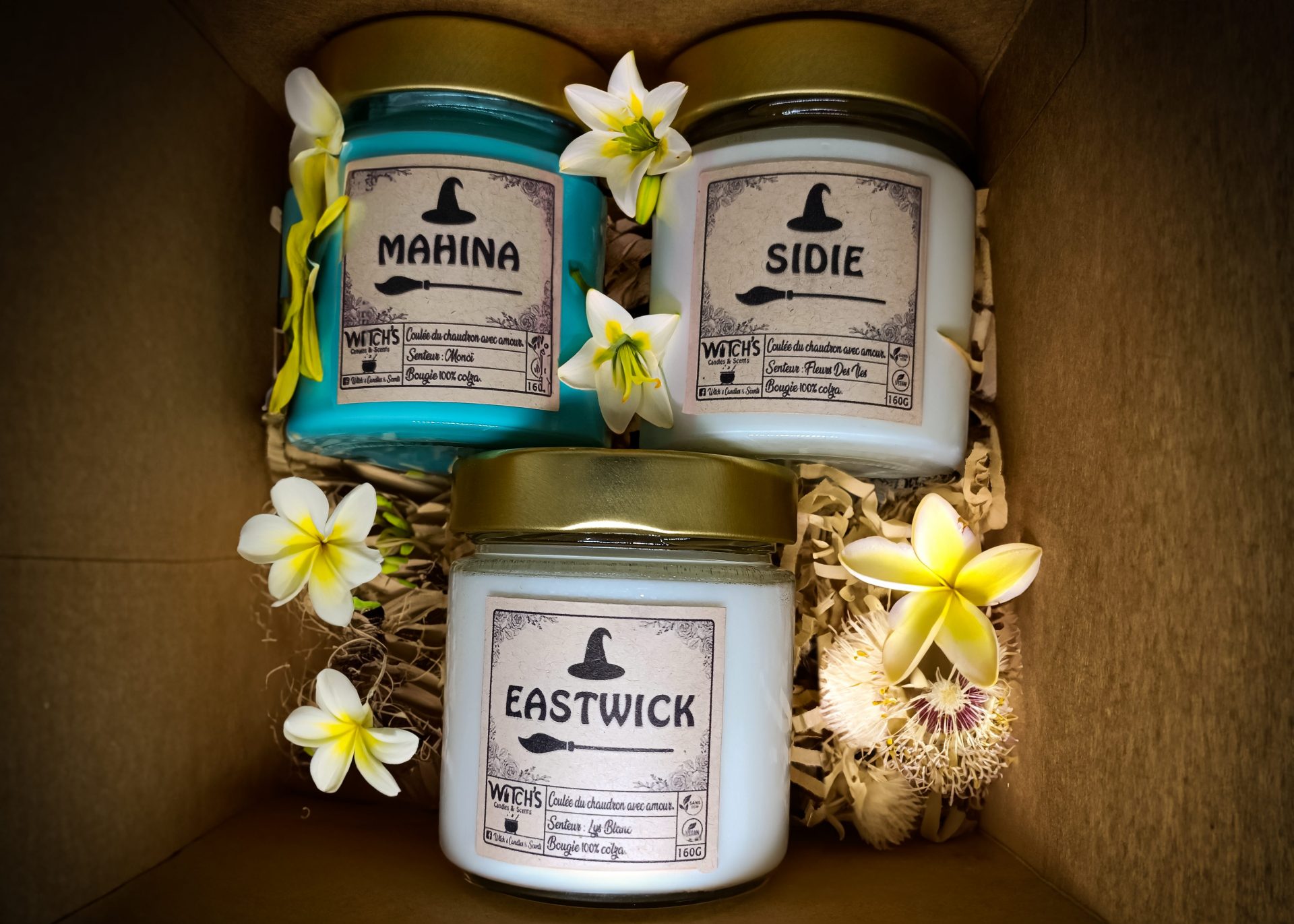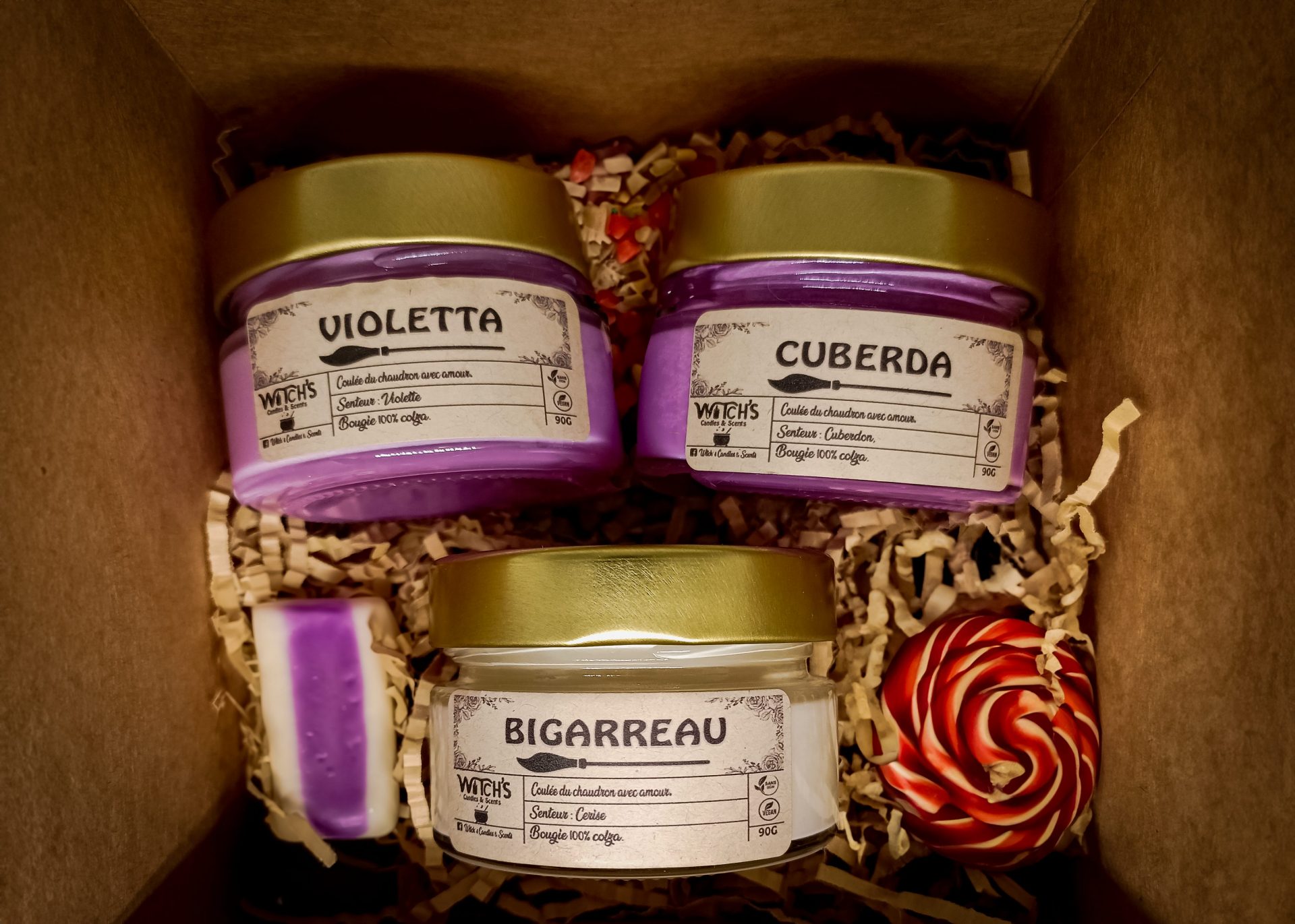 Le Pack Bonbon de Witch’s Candles & Scents est une invitation à un voyage olfactif nostalgique. Nos trois bougies parfumées évoquent les friandises douces et délicieuses de l’enfance avec leurs parfums délicats et envoûtants.