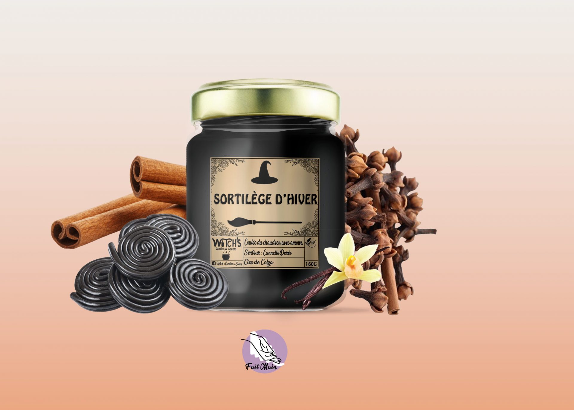Les bougies Witch’s Candles & Scents sont fabriquées artisanalement avec de la cire de colza européenne et sans OGM. Les parfums utilisés sont garantis sans CMR, sans phtalates et sans matières animales. Ils sont fabriqués par un parfumeur de Grasse, capitale mondiale du parfum.