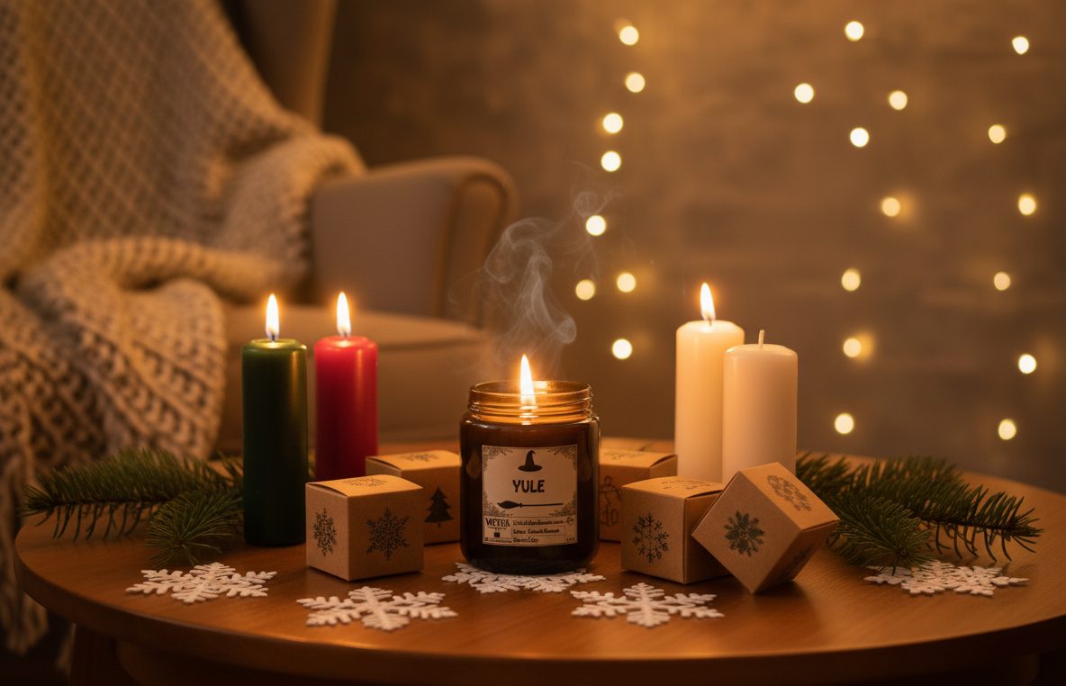 Plongez dans l’esprit de Yule avec notre bougie exclusive, conçue pour célébrer le solstice d’hiver et le retour de la lumière.